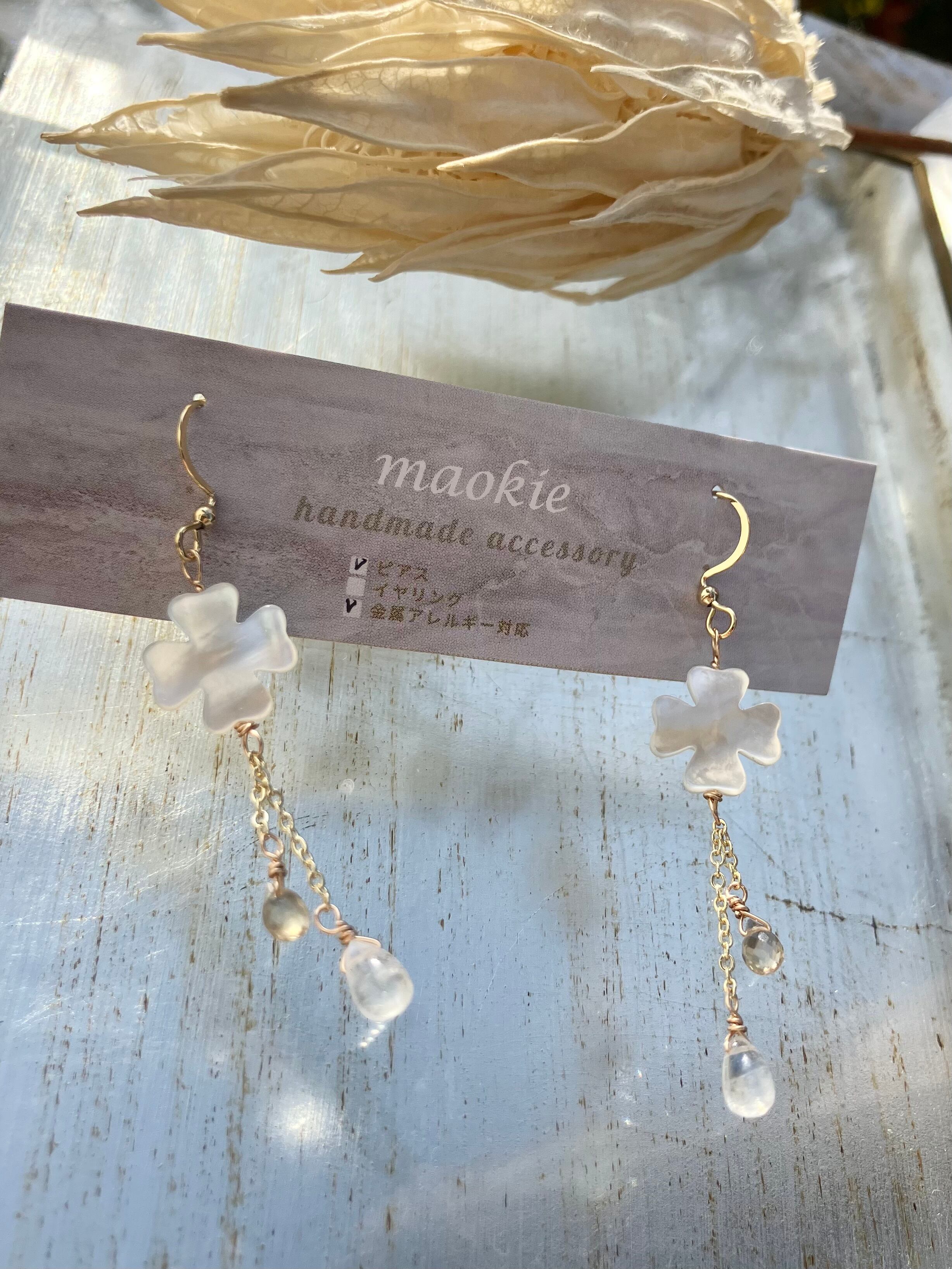 アレルギー対応 白蝶貝クローバーのピアス