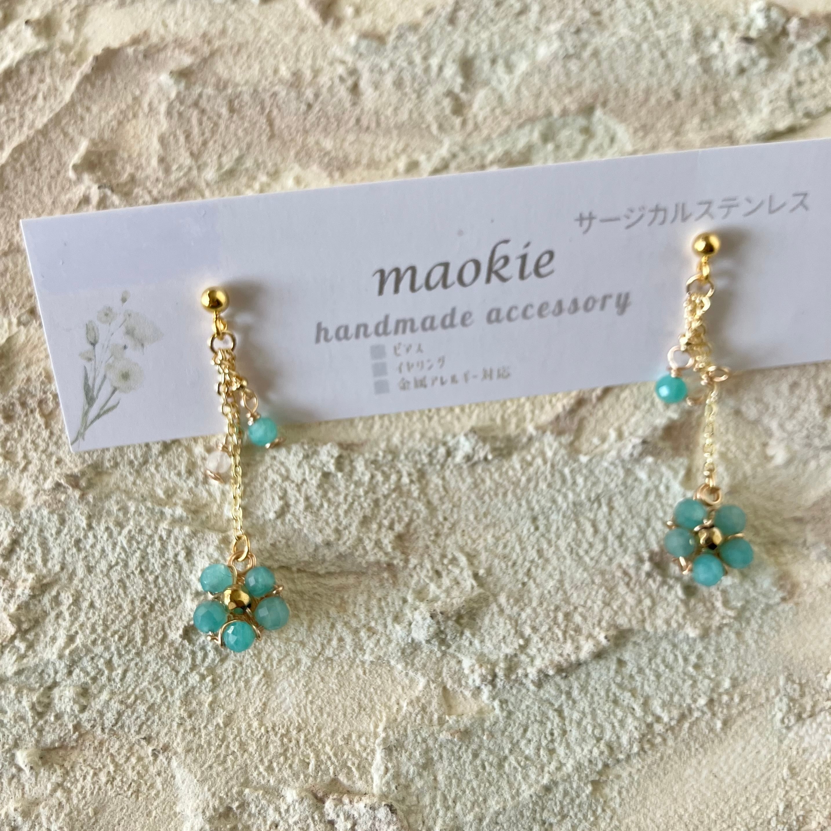 Mさま専用ページ♡天然石のお花の揺れるピアスとリング アマゾナイトシリカ16kgp