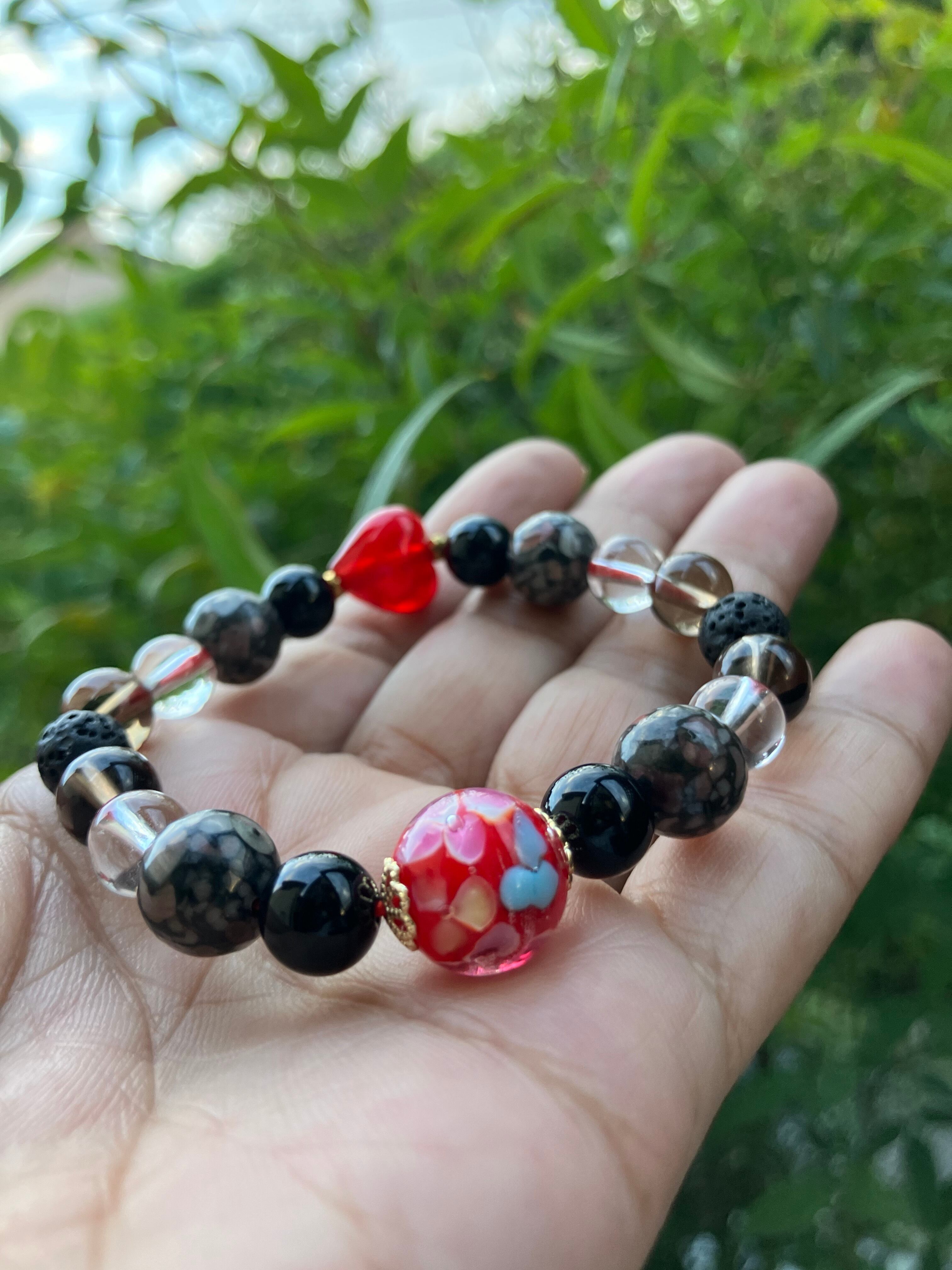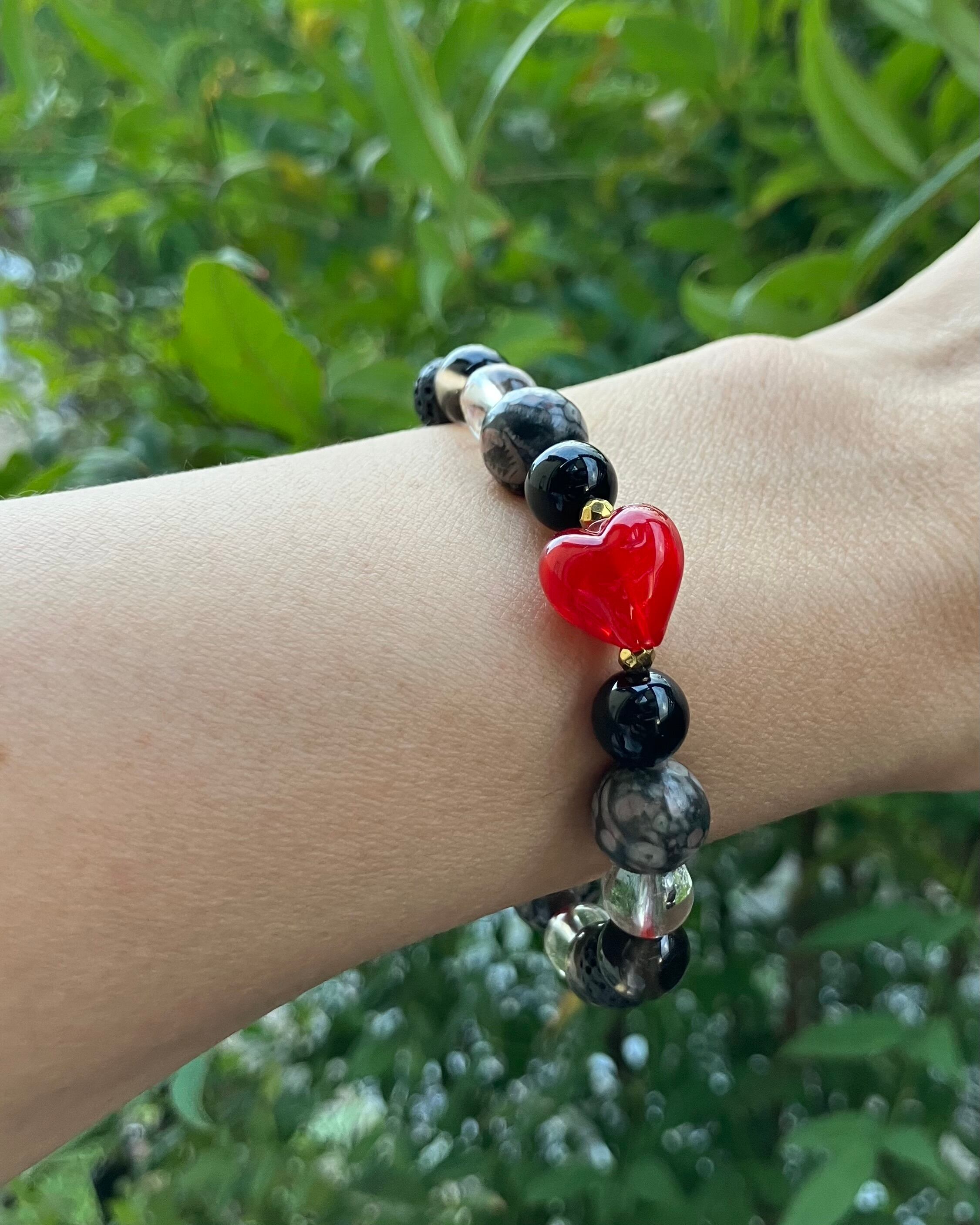 jinさま専用♡アロマ×天然石ブレス「情熱と守護のハートブレス」 アロマミニボトル付 15.5cm