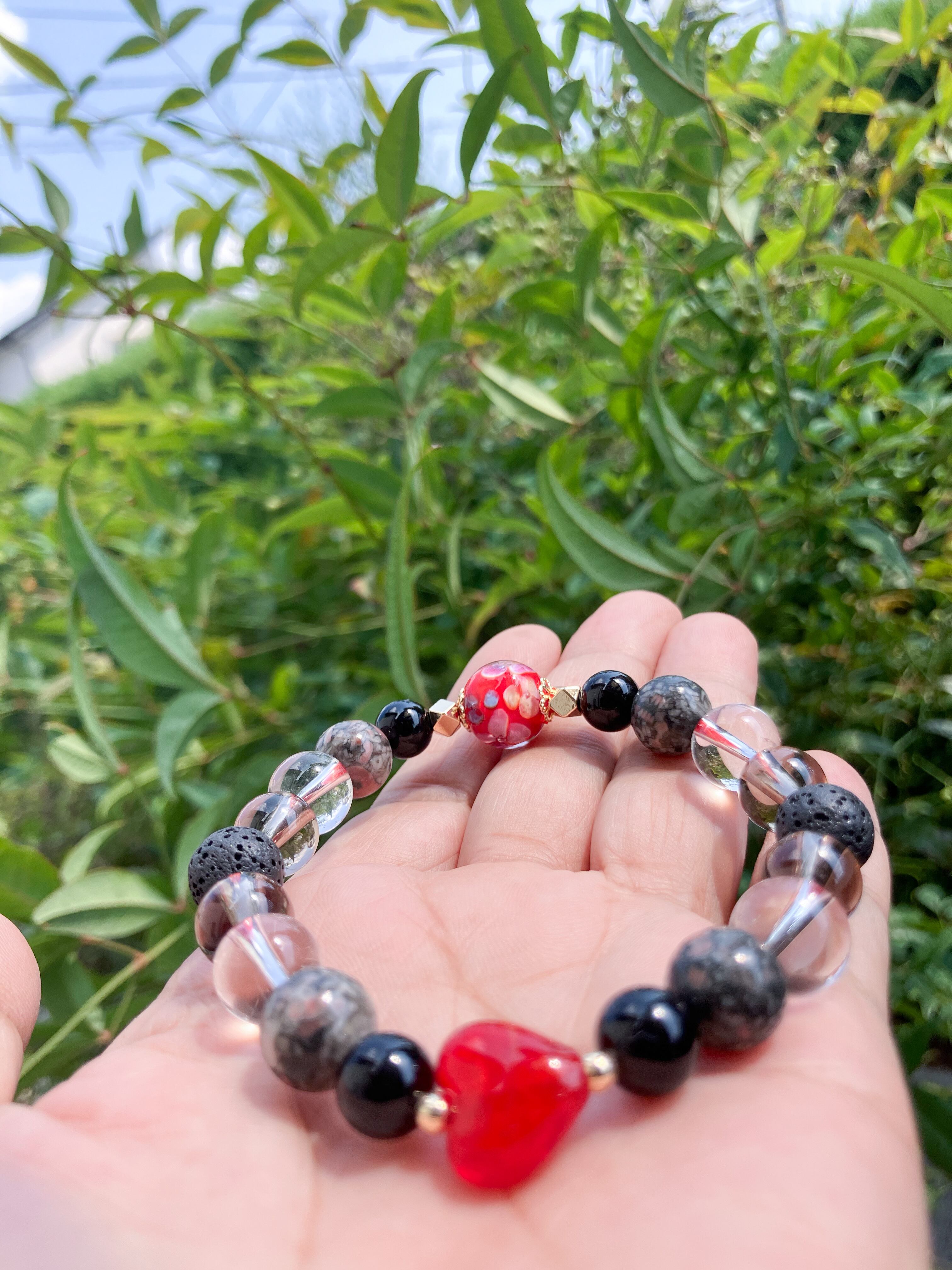 kirariさま専用♡アロマ×天然石ブレス「情熱と守護のハートブレス」 アロマミニボトル付 15.5cm