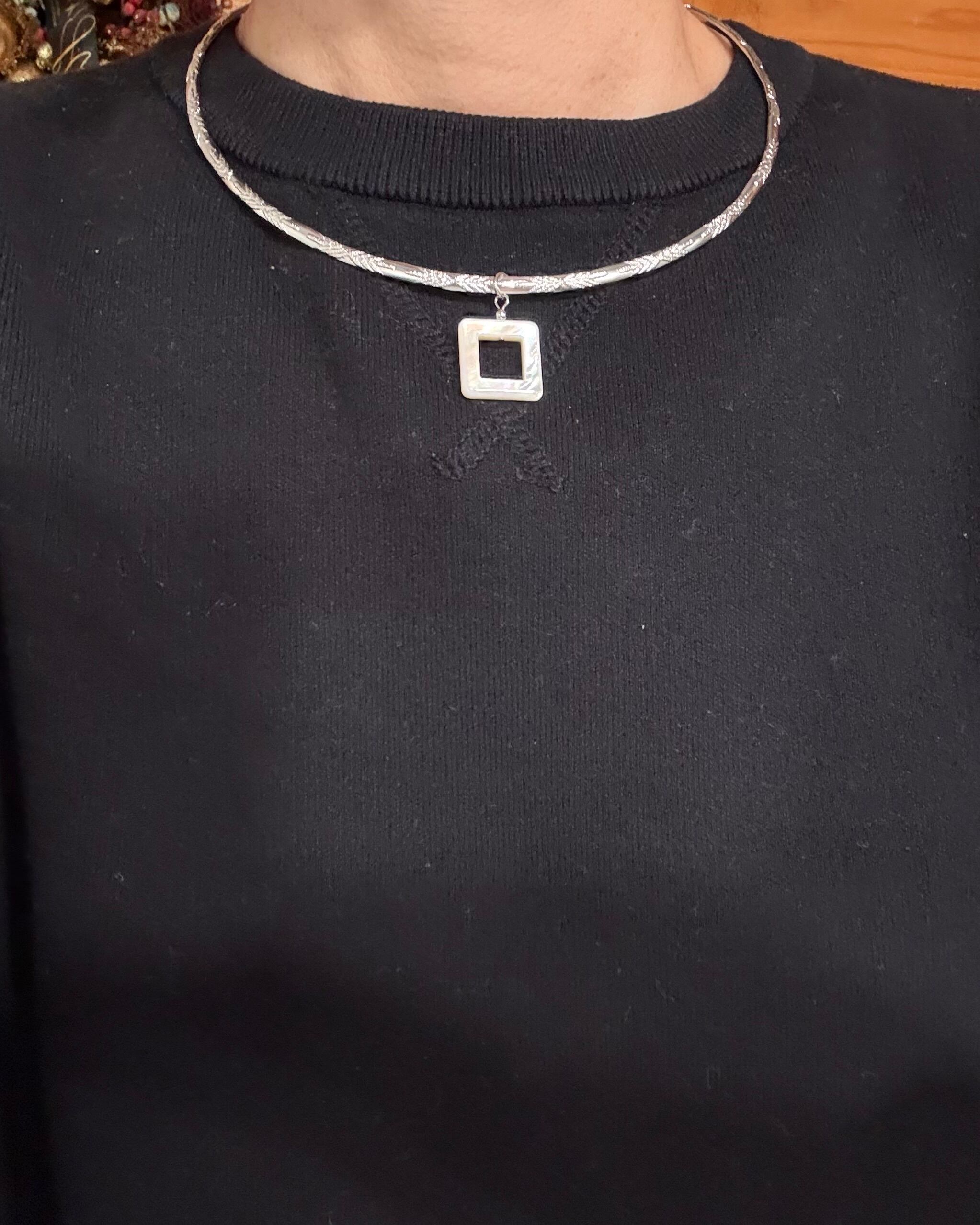 繊細な光沢感が特徴的なシルバーのチョーカーです。