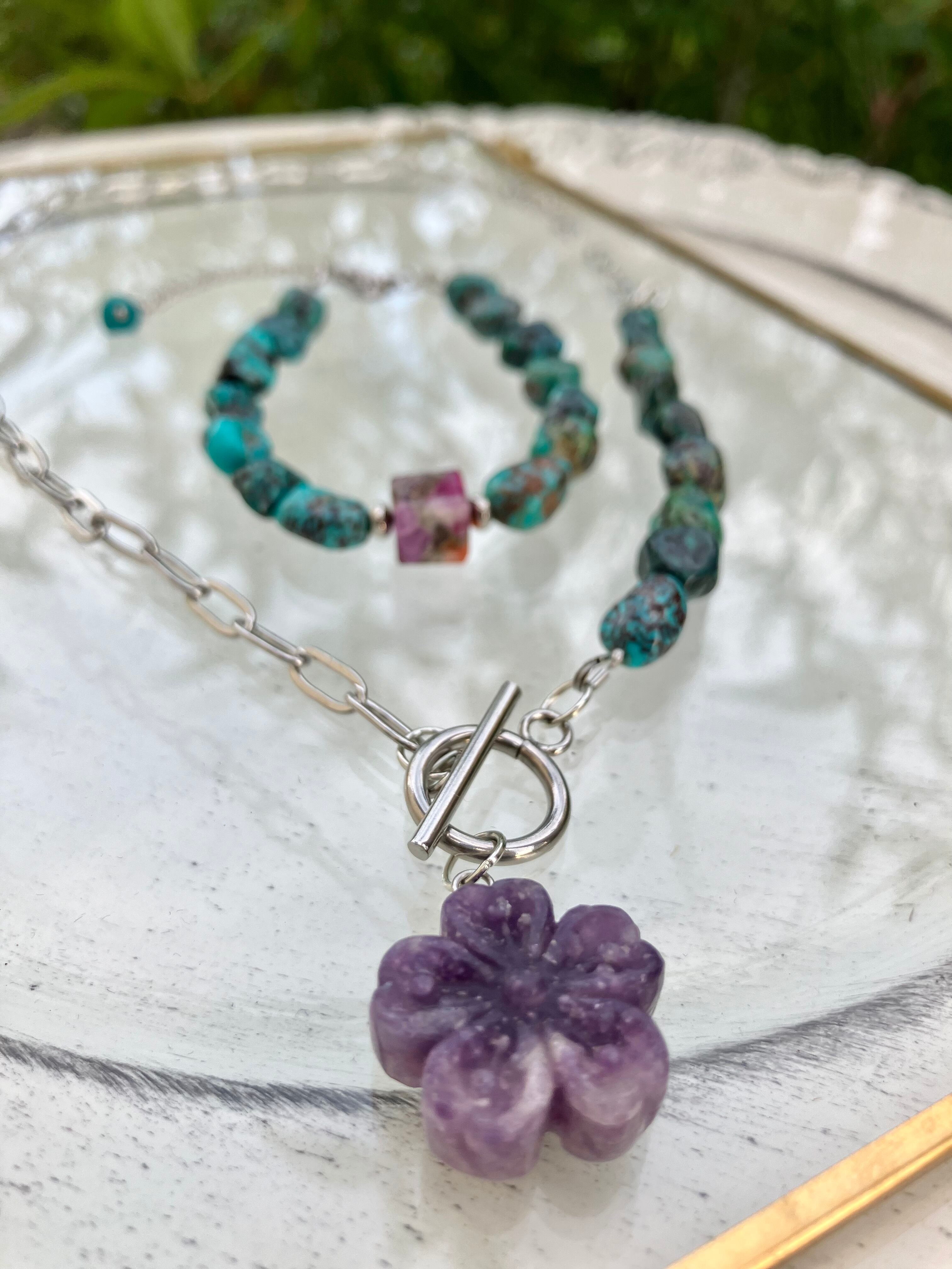 自然界の癒しを身にまとい、新たな一歩を踏み出す勇気を与えてくれるネックレス。是非、あなたの日常に寄り添う存在としてお迎えください。
